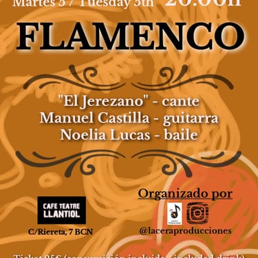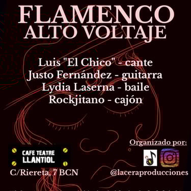 De la mano de "LaCeraProducciones" con los mejores artistas del panorama musical Barcelonés en el emblemático Teatre Llantiol del pintoresco barrio de El Raval de Barcelona.
